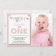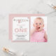 Una hermosa y moderna invitación de cumpleaños con foto que puedes personalizar y enviar a amigos y familiares para celebrar el cumpleaños. El texto está configurado en una tipografía popular. Reemplaza la foto de muestra con la tuya. Los colores de texto rosa, verde y negro se pueden cambiar utilizando el menú de edición. El patrón de rayas blancas y rosas adorna la parte posterior de la tarjeta. Están disponibles otros colores y patrones.