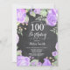 Invitación de cumpleaños 100 a la Floral Púrpura B