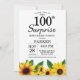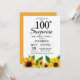 Invitación de cumpleaños número 100 a la Sorpresa del Girasol. Flores florales y fondo blanco. Retro de cosecha de campo. Cumpleaños de las mujeres. 12.º 13.º 15.º 16.º 18.º 20.11.30.40.50.60.70.80.90.100, de cualquier edad. Digital Imprimible. Para una mayor personalización, haga clic en el botón "Personalizar" y utilice nuestra herramienta de diseño para modificar esta plantilla.