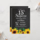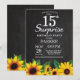 Invitación de cumpleaños número 15 de la empresa Sunflower Surprise. Flores florales y fondo de pizarra. Retro de cosecha de campo. Cumpleaños del Chica de Niños. 12.º 13.º 15.º 16.º 18.º 20.11.30.40.50.60.70.80.90.100, de cualquier edad. Digital Imprimible. Para una mayor personalización, haga clic en el botón "Personalizar" y utilice nuestra herramienta de diseño para modificar esta plantilla.