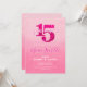 Celebra su cumpleaños histórico con estilo con esta elegante invitación rosa de la quinceañera. Con un brillante purpurina número 15, un suave fondo rosado y una mezcla de fuentes modernas y de escritura, este diseño es perfecto para anunciar su Sweet 15 de una manera glamorosa. Ideal para las fiestas de quinceañeras, dulces 15 o 15 años. Personalice con su propio texto, detalles del fiesta e información de RSVP. Una moda y una invitación femenina que marca la pauta para una celebración inolvidable.