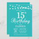 Invitación de cumpleaños número 15 con cadenas. Fondo verde azulado Aqua Turquesa. Cumpleaños de niños. Invitar a un niño o Chica. 13.º 15.º 16.º 18.º 20.21.30.40.50.60.70.80.90.100, cualquier edad. Para una mayor personalización, haga clic en el botón "Personalizar" y utilice nuestra herramienta de diseño para modificar esta plantilla.