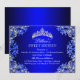 Invitación de cumpleaños 16 azul. Diseño de damasco de perla azul elegante y tiara plateada. Tenga en cuenta: Todas las imágenes planas, no tienen joyas reales!