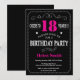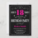 Invitación de cumpleaños 18 Cartón negro rosado ca