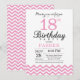 Invitación de cumpleaños 18 con Chevron Rosa. Negro y Blanco. Cumpleaños de adulto. Invitación de cumpleaños para hombre o mujer. Para una personalización adicional, haga clic en el botón "Personalizar" y use nuestra herramienta de diseño para modificar esta plantilla.