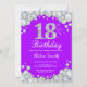 Invitación de cumpleaños 18 Diamante morado y plat