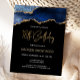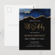 Esta trendy tarjeta de invitación de cumpleaños 18 postales cuenta con una imagen de acuarela de una geoda de ágata en tonos de azul con toques de oro falso. Las palabras "18 cumpleaños" aparecen en brillo de oro falso en una fuente moderna de escritura a mano decorativa. Personalízala con el nombre del invitado de honor en texto de color dorado y los detalles en blanco sobre fondo negro.