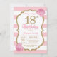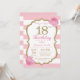 Invitación al cumpleaños 18. Rosa y Oro. Brillantina dorada. Rayas rosas y blancas. Flor Floral Rosa. Cumpleaños de adultos. Fiesta de cumpleaños de mujeres. Para una mayor personalización, haga clic en el botón "Personalizar" y utilice nuestra herramienta de diseño para modificar esta plantilla.