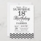 Invitación de cumpleaños 18 sorpresa Chevron negro