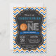 Invitación al cumpleaños 1.ᵉʳ Fiesta. Invitación a fiesta de cumpleaños. Baloncesto Deportivo Temático Bash de Cumpleaños. Naranja azul y fondo de pizarra de Chevron blanco. 1.ᵉʳ Primer Cumpleaños. Digital Imprimible. Para una mayor personalización, haga clic en el botón "Personalizar" y utilice nuestra herramienta de diseño para modificar esta plantilla.