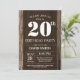 Invitación de cumpleaños 20 en rústica Madera de é