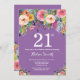 Invitación de cumpleaños 21ª morada floral púrpura para mujeres. Flor floral acuarela. Fondo Violeta De Lavanda Lilac Púrpura. Rosa, Amarillo, Naranja, Flor Púrpura. Cumpleaños de adultos. 13.º 15.º 16.º 18.º 20.21.30.40.50.60.70.80.90.100, Cualquier Edad. Para una mayor personalización, haga clic en el botón "Personalizar" y utilice nuestra herramienta de diseño para modificar esta plantilla.