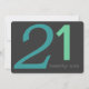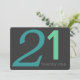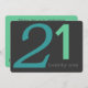 Grandes números azules y verdes de menta que puedes personalizar para leer cualquier edad que quieras en un fondo gris carbón vegetal en la parte delantera, una boca verde menta con texto de carbón vegetal que puedes fácilmente personalizar con la información de tu fiesta de cumpleaños en la parte trasera. Esta invitación fácil de personalizar para el cumpleaños es genial para cualquier edad, desde el cumpleaños 21 hasta el 30, cumpleaños 40, cumpleaños 50, hasta el cumpleaños 99.