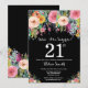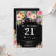 Invitación de cumpleaños número 21 para mujeres. Flor floral acuarela. Fondo negro. Rosa, Amarillo, Naranja, Flor Púrpura. Cumpleaños de adultos. 13. 15. 16. 18. 20. 21. 30. 40. 50. 60. 70. 80. 90. 100. Cualquier edad.
