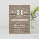 Invitación de cumpleaños número 21 de Rustic Surprise. Tipografía blanca. Fondo De Madera Rústica. Cumpleaños de adultos. Cumpleaños de hombres o mujeres. Invite a un niño o a una Chica. 13.º 15.º 16.º 18.º 20.21.30.40.50.60.70.80.90.100. Cualquier edad. Para una mayor personalización, haga clic en el botón "Personalizar" y utilice nuestra herramienta de diseño para modificar esta plantilla.