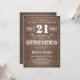 Invitación de cumpleaños número 21 de Rustic Surprise. Tipografía blanca. Fondo De Madera Rústica. Cumpleaños de adultos. Cumpleaños de hombres o mujeres. Invite a un niño o a una Chica. 13.º 15.º 16.º 18.º 20.21.30.40.50.60.70.80.90.100. Cualquier edad. Para una mayor personalización, haga clic en el botón "Personalizar" y utilice nuestra herramienta de diseño para modificar esta plantilla.