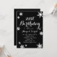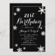 Una salpicadura de copos de nieve decora esta divertida invitación a la fiesta de cumpleaños, con un fondo negro clásico. Si se necesitan elementos de coordinación adicionales para su evento, póngase en contacto con nosotros en prettyfancyinvites@gmail.com con su solicitud.