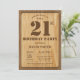 Invitación rústica de 21 años con antecedentes de madera rústica. Vintage Retro Country. Cumpleaños de adultos. Cumpleaños de hombres o mujeres. Invite a un niño o a una Chica. 13.º 15.º 16.º 18.º 20.21.30.40.50.60.70.80.90.100. Cualquier edad. Para una mayor personalización, haga clic en el botón "Personalizar" y utilice nuestra herramienta de diseño para modificar esta plantilla.