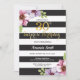Invitación de cumpleaños 30 sorpresa para mujeres. Invitación de fiesta de cumpleaños negra y dorada. Brillo dorado. Flor floral de acuarela morada. Rayas blancas y negras. Digital imprimible. Para una mayor personalización, haga clic en el botón "Personalízalo" y use nuestra herramienta de diseño para modificar esta plantilla.