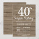 Invitación de cumpleaños 40 de Rustic Surprise. Fondo De Madera Rústica. Vintage Retro Cumpleaños. Cumpleaños de adultos. Invitación de cumpleaños de hombres o mujeres. 13.º 15.º 16.º 18.º 20.21.30.40.50.60.70.80.90.100, cualquier edad. Para una mayor personalización, haga clic en el botón "Personalizar" y utilice nuestra herramienta de diseño para modificar esta plantilla.