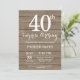 Invitación de cumpleaños 40 sorpresa rústica
