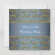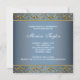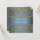 Invitación de fiesta de cumpleaños número 50 de mujer con superposición de remolino dorado y pizarra elegante azul.