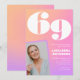 Invitación de cumpleaños 69ª foto retro gradiente rosado