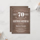 Invitación de cumpleaños número 70 de Rustic Surprise. Tipografía blanca. Fondo De Madera Rústica. Cumpleaños de adultos. Cumpleaños de hombres o mujeres. Invite a un niño o a una Chica. 13.º 15.º 16.º 18.º 20.21.30.40.50.60.70.80.90.100. Cualquier edad. Para una mayor personalización, haga clic en el botón "Personalizar" y utilice nuestra herramienta de diseño para modificar esta plantilla.