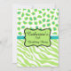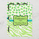 ¡Esta invitación es genial para celebrar 70! Personalizar esta sofisticada y elegante invitación para una fiesta de cumpleaños número 70 u otro evento. El diseño combina rayas de cebra de color verde limón y blanco con pieles de leopardo o de chita para crear un diseño moderno y moderno. Un emblema verde limón delineado en negro sobre una barra azul turquesa verde azulada y crea un área de personalización, con el nombre del chica de cumpleaños y las palabras "Fiesta de cumpleaños número 70" que se pueden personalizar a otras palabras. La parte posterior de la invitación incluye campos para toda la información de su fiesta. Puede cambiar y eliminar campos fácilmente según sea necesario. Los colores son verde limón, blanco, azul turquesa verde azulado y negro. Las pieles de animales salvajes para el diseño gráfico son una moda artística y de diseño, y son muy populares de la moda a la decoración doméstica. Esta sofisticada colección de huellas de cebra y leopardo es una de las varias combinaciones de colores disponibles para su elección de invitaciones y coordenadas con otros productos para un fiesta elegante.