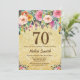 Purpurina de Oro Floral 70th Birthday Invitation for Women. Flor floral acuarela. Fondo Purpurina de oro. Rosa, Amarillo, Naranja, Flor Púrpura. Cumpleaños de adultos. 13.º 15.º 16.º 18.º 20.21.30.40.º 50.60.70.80.90.100, Cualquier Edad. Para una mayor personalización, haga clic en el botón "Personalizar" y utilice nuestra herramienta de diseño para modificar esta plantilla.
