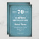 Sorpresa 70 cumpleaños invitación para hombres y mujeres. Elegante carta de invitación en azul claro con fuente de escritura de tipografía retro. ¡Salud a 70 años! Se puede personalizar a cualquier edad. Perfecto para una celebración de cumpleaños adultos.