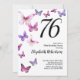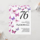 Invitación de cumpleaños 76ª mariposa en rosa/mora