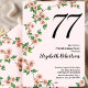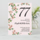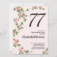 Invitación de cumpleaños 77 con flores en rosa Rub