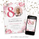 Invitación de cumpleaños número 80 de Pink Floral, foto personalizado. Sumérgete en una delicada mezcla de tonos acuáticos, predominantemente rosa, y detalles florales intrincados que forman un capricho de elegancia. Elevar el toque personal con una foto personalizado, tejiendo perfectamente recuerdos preciados en el diseño de la invitación. Esta obra de arte femenina no sólo capta la esencia del viaje del celebrante, sino que también exuda un aire de sofisticación. Únete a nosotros para honrar este hito con una invitación que combina el suaves encanto de los florales rosados, la fluidez de la acuarela y el encanto único de un toque personalizado, prometiendo una celebración inolvidable de lo extraordinario y lo femenino.