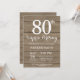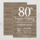 Invitación de cumpleaños 80 de Rustic Surprise. Fondo De Madera Rústica. Vintage Retro Cumpleaños. Cumpleaños de adultos. Invitación de cumpleaños de hombres o mujeres. 13.º 15.º 16.º 18.º 20.21.30.40.50.60.70.80.90.100, cualquier edad. Para una mayor personalización, haga clic en el botón "Personalizar" y utilice nuestra herramienta de diseño para modificar esta plantilla.