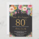 Invitación de cumpleaños 80 Floral Sorpresa para Mujeres. Acuarela Floral Flor. Brillo Negro y Dorado. Flor Rosa, Amarilla, Naranja, Púrpura. Cumpleaños Adulto. Para una personalización adicional, haga clic en el botón "Personalizar" y use nuestra herramienta de diseño para modificar esta plantilla.