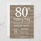 Invitación de cumpleaños número 80. Fondo De Madera Rústica. Vintage Retro Cumpleaños. Cumpleaños de adultos. Invitación de cumpleaños de hombres o mujeres. 13.º 15.º 16.º 18.º 20.21.30.40.50.60.70.80.90.100, cualquier edad. Para una mayor personalización, haga clic en el botón "Personalizar" y utilice nuestra herramienta de diseño para modificar esta plantilla.