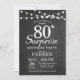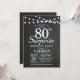 Invitación de cumpleaños 80 sorpresa con luces de cuerda en pizarra. 13 15 16 18 21 30 40 50 60 70 80 90 100, Cualquier edad. Para una personalización adicional, haga clic en el botón "Personalízalo" y use nuestra herramienta de diseño para modificar esta plantilla.