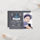 La invitación de cumpleaños náutico de este niño a la pizarra incluye un ancla y un casco en un fondo escaneado de pizarra. El diseño también incluye un borde blanco de doble línea y divisores. La fotografía de tu pequeño aparece en la parte derecha de la invitación dentro de un borde de pizarra. Esta invitación está influenciada por el popular estilo de la pizarra y el arte esténcil. Está lista para ser personalizada y es ideal para quien le gusten las invitaciones a pizarra y busca una invitación para una fiesta de cumpleaños número 1 o 2. Está listo para que lo personalizes.