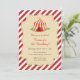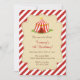 Invitación de cumpleaños con diseño de carpa de circo y combinación de color rojo.