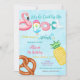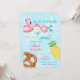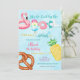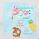 ¡Haz un gran impacto con esta divertida y colorida invitación de cumpleaños para una fiesta de piscina! Con ilustraciones juguetonas como un flotador de flamenco, paleta, flotador de dona, piña, pretzel y pelota de playa contra un vibrante fondo de piscina, este diseño establece el tono perfecto para una celebración de verano. Fuentes en negrita y colores brillantes destacan todos los detalles importantes de la fiesta, lo que facilita compartirlos con los invitados. Ideal para cumpleaños de niños, reuniones de verano o cualquier evento junto a la piscina, esta invitación es festiva y llamativa.