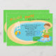 Empieza tu celebración con esta adorable invitación. ¡Es genial para ese chico especial tener un fiesta de piscina! Está situado sobre un fondo verde lima con unas marcas de agua verde más claras dispersas. Hay una gran piscina con un chico lindo parado al lado de la piscina con un traje de baño naranja sosteniendo una manguera en la mano con agua chorreando. En la parte superior están las palabras "Fiesta de piscina" y los O's son tubos. Hay una bola de playa flotando alrededor del agua en la piscina. Consulte los muchos otros productos y diseños de esta línea. ©Ilustraciones JW