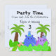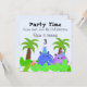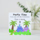 Que los niños se entusiasmen con este lindo hipopótamo azul y púrpura en la jungla. Una invitación divertida de cumpleaños. Personalizar con su propia información según lo desee.