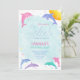 El Invite presenta hermosos delfines coloridos. Acuarela, estrellas, sol brillante y delfines. Perfecto para una temática playera, fiesta de la piscina, animales del océano, animales del mar, etc.