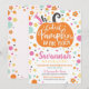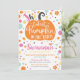 Calabaza Cutest chica en el parche. Invitación de calabaza moderna de diseño único. Colores de otoño luminosos. ¡Perfecto para la fiesta de cumpleaños de tu calabaza!
