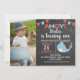 Invitación a cumpleaños con fotos de ballenas en Chalkboard Cute Chalkboard Esta invitación a la fiesta de cumpleaños con tiza para un niño adorable incluye una ballena, algunas banderas, un encabezado de dos colores y puntos dorados tenues en un fondo de pizarra. Esta es una manera muy linda de invitar a los invitados a la fiesta de cumpleaños temática a la ballena de tu pequeño.