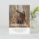 Una simple invitación al decimotercer cumpleaños con tu propia foto y las palabras 'trece' encima, junto con un corazón. Puede editar todo el texto más el color del texto y el corazón.