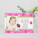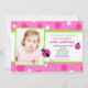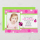 Invitación de cumpleaños a la foto verde rosa de Sweet Ladybug
