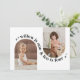 Una moderna invitación conjunta de cumpleaños con 4 fotos propias en forma de arco - 2 en la parte delantera y 2 en la parte trasera. El texto del título está curvado alrededor de las fotos junto con las estrellas. Puede cambiar el color de todo el texto y las estrellas en este diseño.