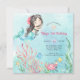 La invitación de cumpleaños de los chicas bajo el mar incluye una bonita escena submarina con una sirena.